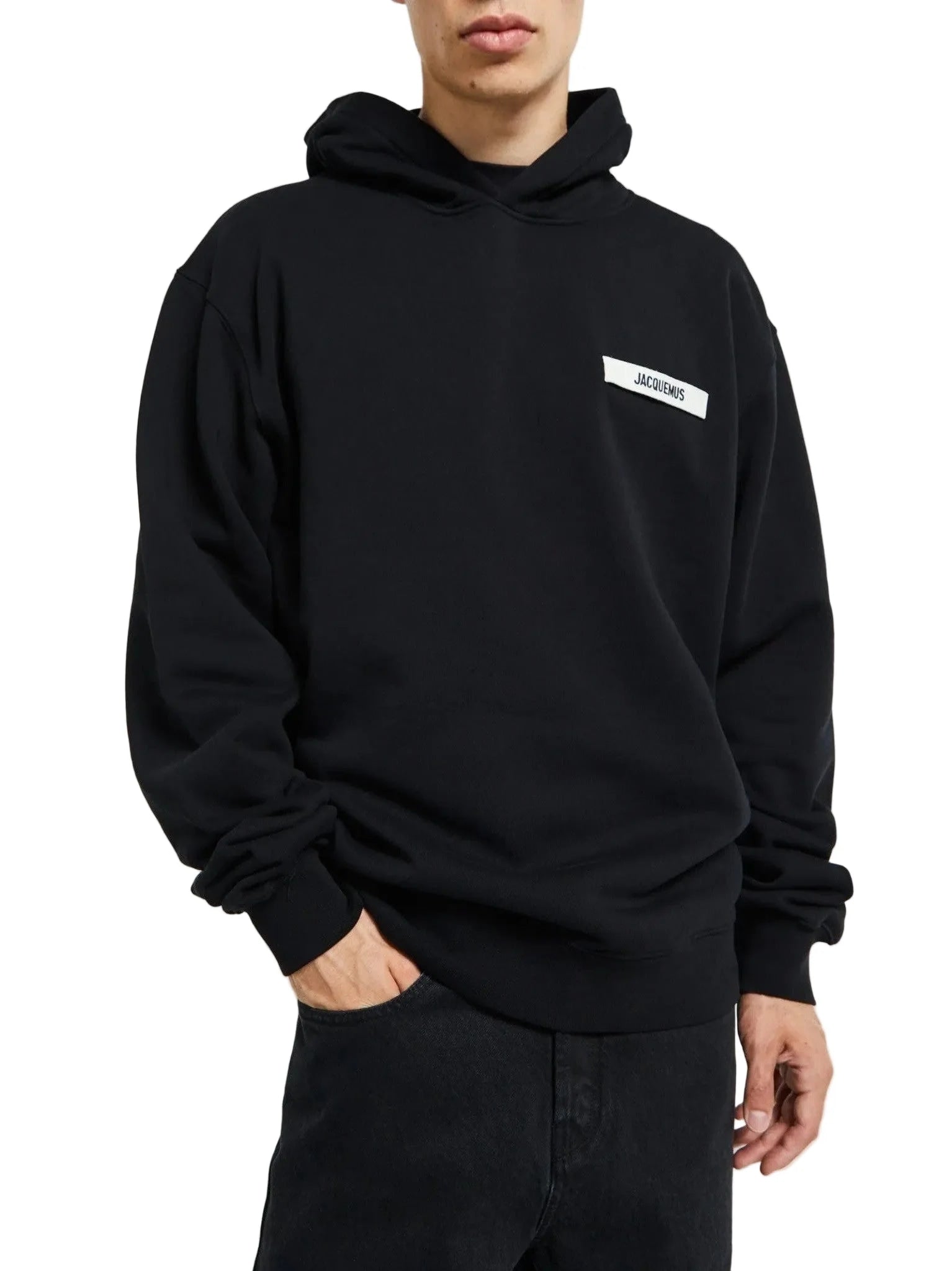 Jacquemus Le Hoodie Gross Grain Logo-Applique Top Black one-kickz